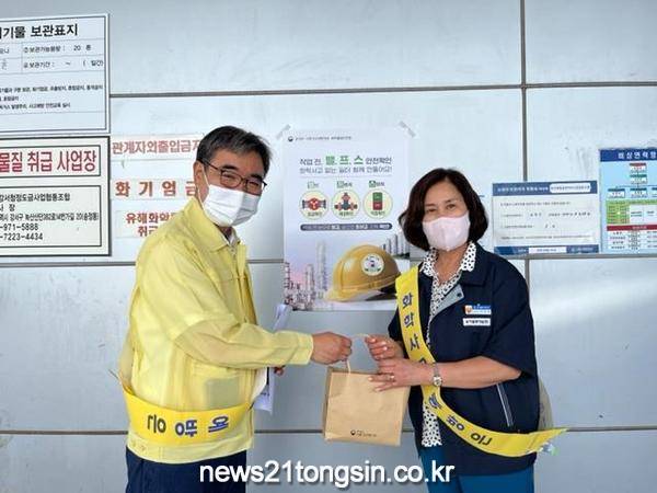 또한, 유해화학물질을 취급하는 현장 관계자들에게“유독물 취급시설 안전점검 생활화”가 각인된 자외선 차단용 쿨토시를 전달하고 격려하였다.