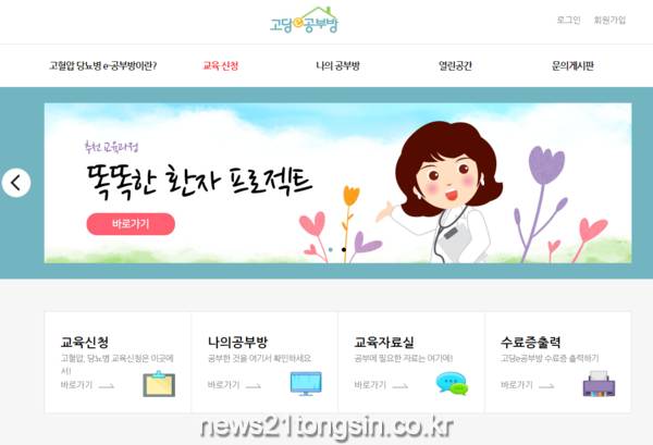 「고당e공부방」은 코로나19 대유행 이후 비대면 서비스 요구 증가와 시간·장소에 구애 받기 않고 편리하게 자기 관리를 할 수 있는 교육 프로그램으로, 고혈압·당뇨병 질환·영양·운동 교육정보 제공하여 환자 스스로 질환관리에 대한 학습을 할 수 있으며