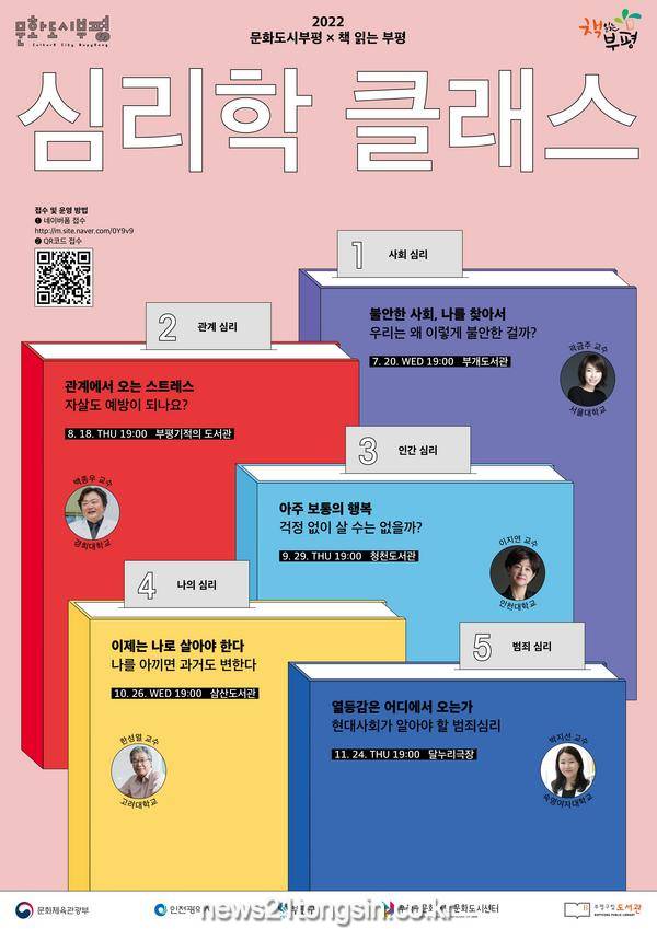 강연은 20일부터 오는 11월 24일까지 진행하며, ‘심리학’을 주제로 ‘2022년 책 읽는 부평’ 대표 도서인 ‘나라는 식물을 키워보기로 했다’의 ‘심리, 내면, 힐링’을 소재로 다룬다.
