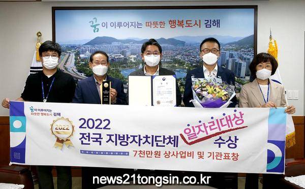 김해시(시장 홍태용)는 ‘2022 전국 지방자치단체 일자리 대상’에서 우수상을 수상해 7,000만원의 상사업비를 확보했다고 22일 밝혔다.