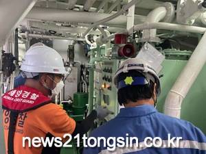 해양선박 환경오염 점검 순찰중 | 선박기관실 오염점검 순찰중 |