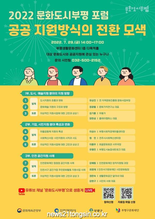 포럼에 대한 자세한 내용은 문화도시부평 누리집(www.bpcf.or.kr/ccity)또는 문화도시센터(☎500-2152)에서 확인할 수 있다.