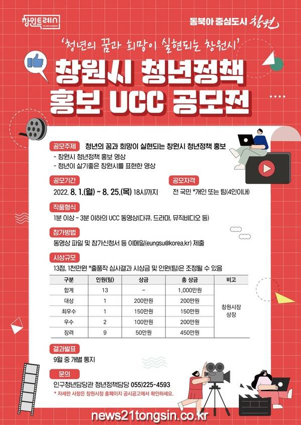 창원특례시(시장 홍남표)는 청년의 꿈과 희망이 실현되는 창원시를 표현할 ‘창원시 청년정책 홍보 UCC 공모전’을 개최한다.