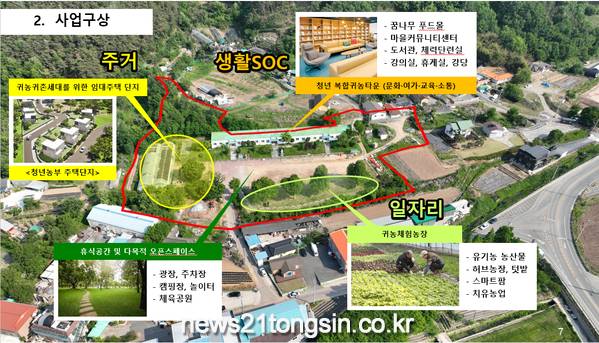 또 맞춤형 교육프로그램 등을 지원해 농촌지역의 경제 활성화 선도 모델로 만든다는 구상이며, 총사업비 50억원(국비25 군비25)이 투입될 예정이다.