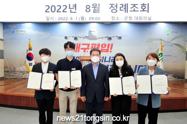 군위군은 관행혁신, 협업조정, 규제애로 해소 등 군민 입장에서 적극적으로 업무를 추진하여 성과를 창출한 공무원을 격려하고 공직사회 내 적극행정 분위기 확산을 위해 2022년도 상반기 적극행정 우수공무원을 선발하고 표창 및 포상금을 수여했다.