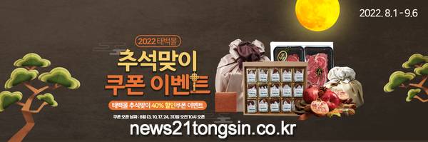 태백시(시장 이상호)는 추석을 맞아 지난 1일부터 오는 9월 6일까지 태백시 공식 온라인쇼핑몰 ‘강원태백몰’에서 추석맞이 할인 및 쿠폰 이벤트를 운영한다.