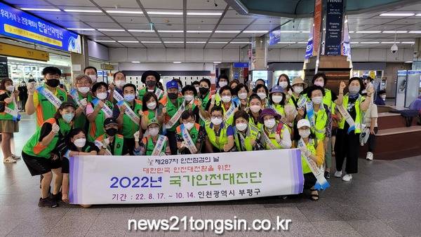 부평구(구청장 차준택)는 지난 3일 부평역 지하상가에서 안전점검의 날 캠페인을 진행했다. 이날 캠페인에는 구와 지역자율방재단, 안전모니터봉사단 등 단체 관계자 50여 명이 참여했다.