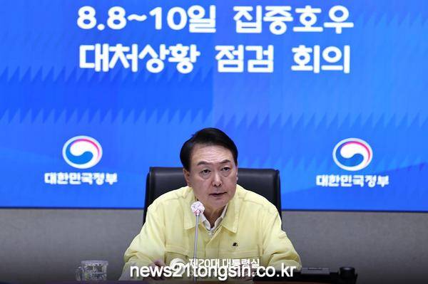침수 대책 회의를 주재한 윤석열 대통령, 집중호우로 국민이 많은 피해를 입었고 소중한 생명을 잃었다며, 취임 뒤 처음으로 직접 사과했다.