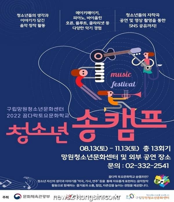 지난 6월 15일 구립망원청소년문화센터(관장 이희수)는 문화체육관광부가 주최하고 한국문화예술교육진흥원이 주관하는 ‘2022 꿈다락 토요문화학교 청소년 송캠프’ 운영 기관으로 선정됐다.