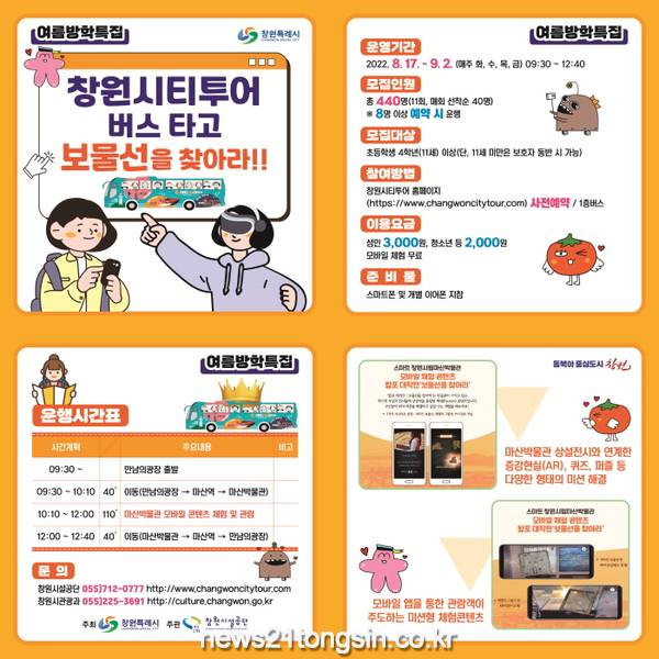 프로그램은 오는 17일부터 9월 2일까지 매주 화·수·목·금요일 창원시티투어 1층버스 탑승객을 대상으로 열린다.