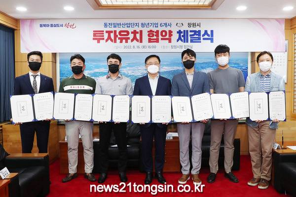 창원특례시(시장 홍남표)는 16일 오후 4시 접견실에서 동전일반산단에 입주예정인 청년기업 6개사와 투자금액 총 389억 원, 신규 고용 136명 규모의 투자협약을 체결했다고 밝혔다.