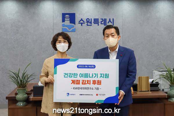▲ 사진=수원특례시KMI(재단법인 한국의학연구소)가 “건강 취약가정에 전달해 달라”며 수원시에 3000만 원 상당 김치를 기부했다.
