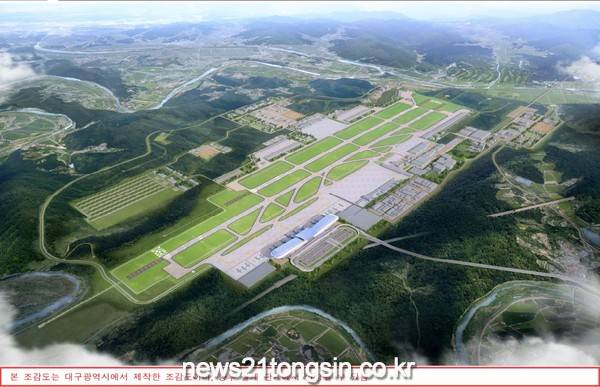 대구시가 18일 통합신공항 기본계획을 발표했다. 사업기간은 2030년까지이며, 규모는 16.9㎢(511만평)으로 시설부지가 12.9㎢(390만평), 소음완충지역이 4.0㎢(121만평)이다.