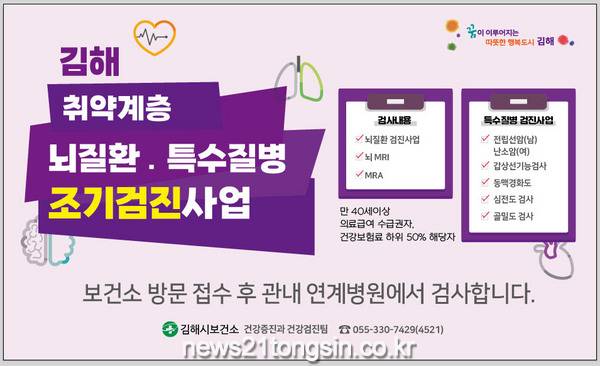 김해시보건소는 뇌질환 정밀검진 사업을 당초 120명에서 300명으로 확대하여 의료취약계층의 검진 기회를 넓힌다고 밝혔다.