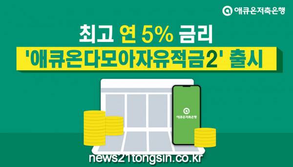 애큐온저축은행이 단순한 우대금리 조건으로 최고 연 5% 금리를 제공하는 비대면 전용 상품 ‘애큐온다모아자유적금2’를 22일 선보였다.