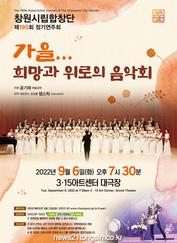 창원특례시(시장 홍남표)는 오는 9월 6일 오후7시30분 3.15아트센터 대극장에서 시립합창단 제190회 정기연주회 <가을...희망과 위로의 음악회>를 개최한다고 23일 밝혔다.