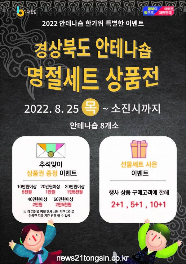 경상북도는 추석 명절을 앞두고 이달 25일부터 내달 10일까지(17일간) 안테나숍 8개소에서 농촌융복합(6차)산업 제품 한가위 특판행사를 개최한다.
