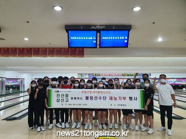 부평구청(구청장 차준택)여자볼링선수단이 지난 23일 갈산동에 위치한 아주볼링장에서 진산중·삼산고 볼링부과 제1회 재능기부 행사를 진행했다.