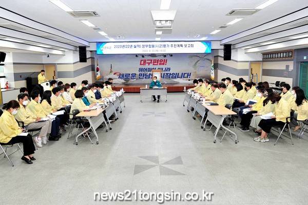 최정우 부군수는 “합동평가가 업무의 일련 성과를 정부로부터 평가받는 것이기 때문에 직원들이 고생하며 업무를 추진하는 만큼 성과가 나타났으면 한다”며 “실적이 타시군과 비교되는 평가인 만큼 체계적 성과관리로 좋은 실적이 나올 수 있도록 최선을 다해 노력해 주시기 바란다”고 했다.