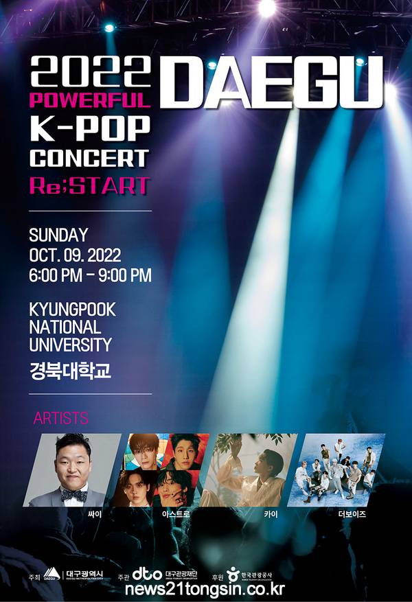 (뉴스21통신) 유재원기자 = 대구시와 대구관광재단은 오는 10월 9일 경북대학교 특설무대에서 개최하는 2022 파워풀 대구 K-POP 콘서트 라인업을 공개했다.