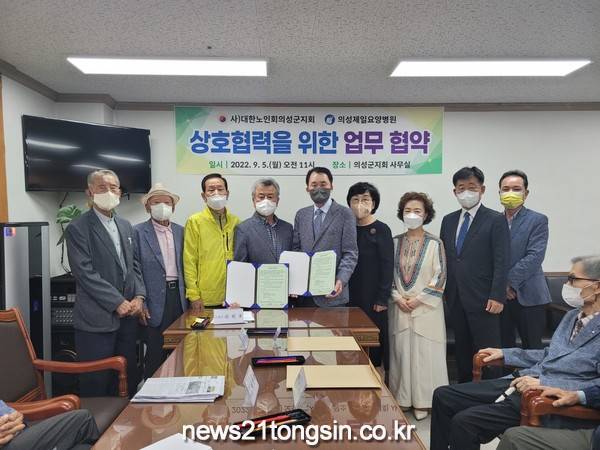암재활 의성제일요양병원(이사장 장윤영)과 (사)대한노인회의성군지회(지회장 신원호)(이하 ‘노인회’라 함)는 5일 의성군종합복지관에서 진료 협조와 유대관계 향상을 위한 상호협력 협약식을 가졌다.
