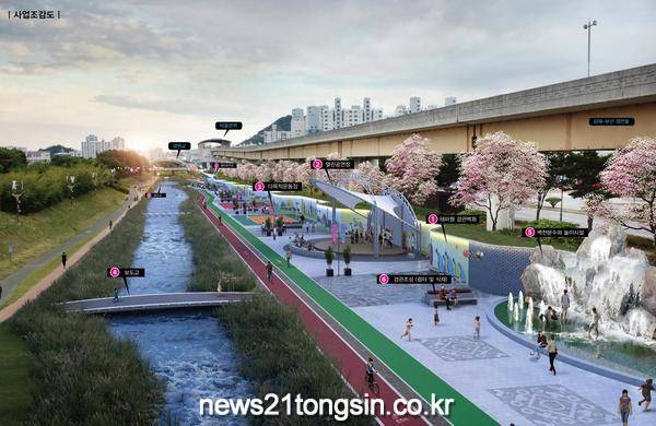 시에 따르면 해반천 여가공간 조성사업은 총사업비 80억원을 들여 해반천 전체 11.5km 구간 중 연지교에서 경원교 사이 500m 구간에 다목적운동장, 공연장, 친수벽화, 놀이터, 경관조명, 보도교 등을 설치하는 사업으로 내년 1월 시작돼 2024년 5월 준공 예정이다.