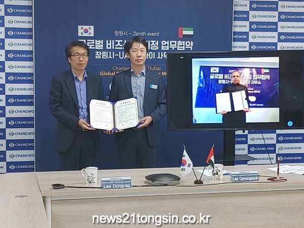 창원특례시(시장 홍남표)는 7일 창원컨벤션센터 내 큐피트센터에서 해외 현지에서 관내 중소기업의 수출활동을 지원하는 창원시 글로벌 비즈센터 아랍에미리트(UAE) 두바이 사무소와 호주 시드니 사무소 지정 온라인 업무협약식을 개최했다.