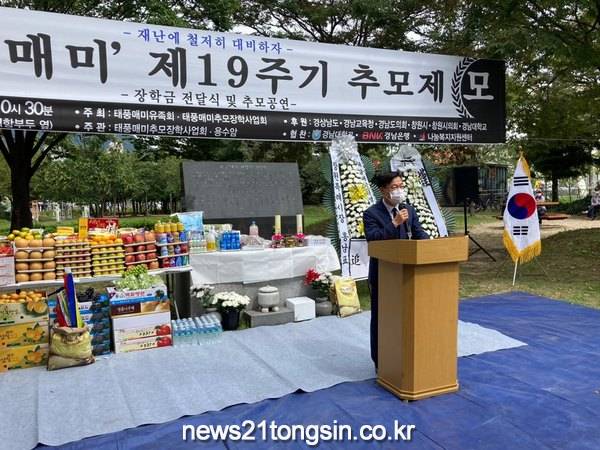 안병오 마산합포구청장은 “세월이 흘러도 잊지 못할 슬픔을 안고 매년 추모제와 장학사업 등을 펼치는 추모장학사업회와 유족회, 도와주시는 모든 분들의 노고에 감사드린다”며 “자연재해로부터는 누구도 자유로울 수 없지만, 태풍 매미때처럼 안타까운 희생이 두 번 다시 발생하지 않도록 작은 부분도 꼼꼼히 살피며 자연재난 대비에 최선을 다하겠다”고 밝혔다.