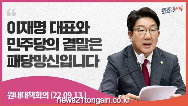 권 원내대표는 “그 결과 민주당은 정치인 개인의 정치적 인질로 전락해, ‘전쟁입니다’ 말 한마디에 정치적 옥쇄의 길을 가고 있는 것”이라며 “이번에 선거법 위반으로 벌금 100만 원 이상 나오면, 이 대표의 의원직 박탈은 물론, 민주당은 선거보전비용 434억을 반환해야 한다. 그야말로 ‘패당망신(敗黨亡身)’”이라고 덧붙였다.