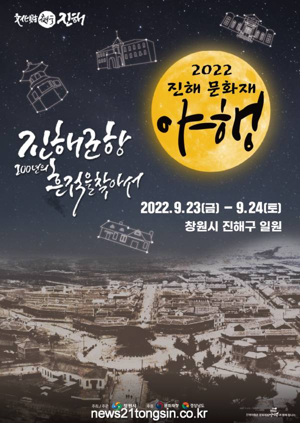창원특례시(시장 홍남표)는 오는 23일부터 24일까지 오후 6시부터 11시까지 진해구 원도심 일원에서 ‘2022 진해 문화재 야행(夜行)을 개최한다고 밝혔다.