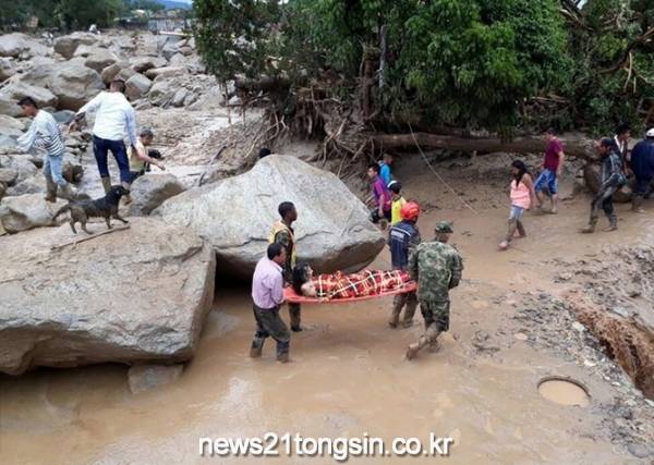 현지시각 17일 오후 4시 40분쯤 수도 산호세에서 70㎞가량 떨어진 지역의 한 도로에서 폭우로 산사태가 나면서 인근에 있던 승용차 2대와 버스가 토사에 밀려 충돌했다.