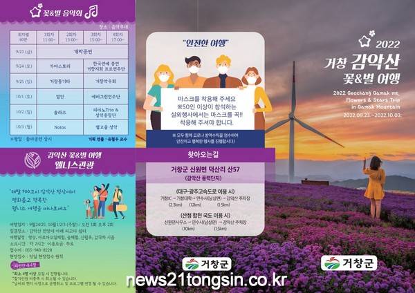 거창군은 9월 23일부터 10월 3일까지 열흘간 ‘감악산 꽃&별 여행’ 축제를 개최한다고 19일 전했다.