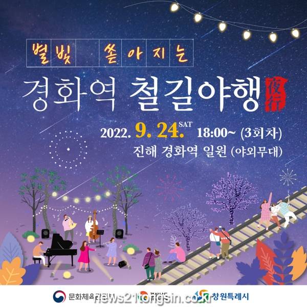 창원특례시(시장 홍남표)는 ‘별빛 쏟아지는 경화역 철길야행’ 3회차 행사를 오는 24일 토요일 저녁 6시 진해구 경화역 공원 야외무대에서 개최한다고 20일 밝혔다.