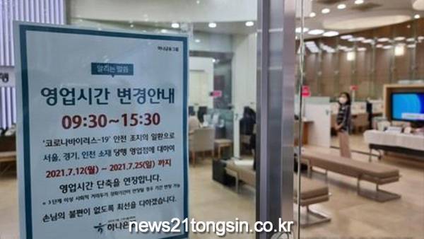 국회 정무위원회 박재호 의원이 금융감독원으로부터 받은 자료를 보면 시중은행 17곳과 저축은행 79곳 가운데 84%인 81곳이 2020년 12월 사회적 거리두기로 영업시간 단축을 시행했다.