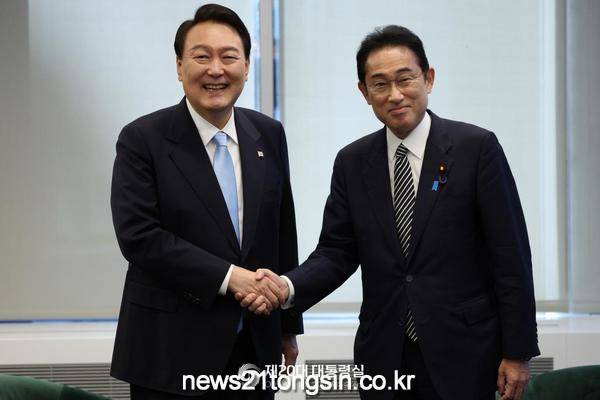 21일(현지시각) 낮 12시23분 미국 뉴욕에서 한°일 정상회담을 시작했다고 대통령실이 밝혔다.