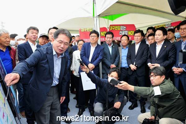 이날 현장에는 100여명의 주민 및 관계자가 찾아와 신공항 건설과 관련된 사항을 질의하고 원희룡 장관이 이에 답하는 형식으로 30여분간 소통하는 시간을 가졌다.