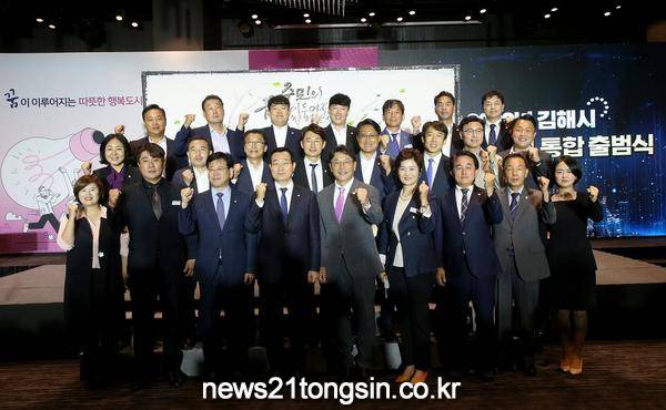 김해시(시장 홍태용)는 지난 23일 오후 2시 중소기업비즈니스센터에서 읍면동 주민자치위원회의 주민자치 권한을 대폭 강화한 주민자치회로의 전환을 알리는 주민자치회 통합 출범식을 개최했다.