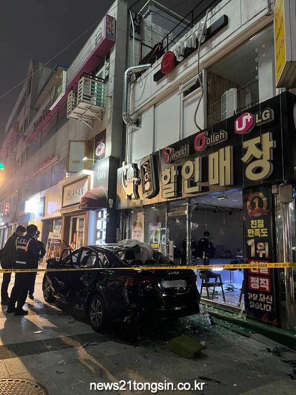 29일 오늘 새벽 2시 30분경 경기 이천시 창전동에 소재한 이동통신상점 앞에 주차된 차량