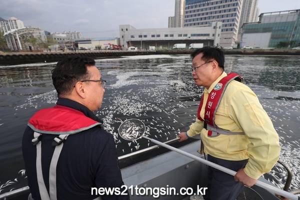 홍남표 창원특례시장은 계속되는 물고기 폐사 원인규명을 위한 폐사현장 확인과 향후 재발방지를 위한 대책수립을 위해 발생지역을 비롯한 창원시 해안을 시찰했다. 홍 시장은 “물고기의 집단 폐사가 발생한 것에 대한 신속한 수거대책은 물론 철저한 원인규명을 통한 재발방지 및 해양보존을 위한 방안을 강구하겠다”고 말했다.