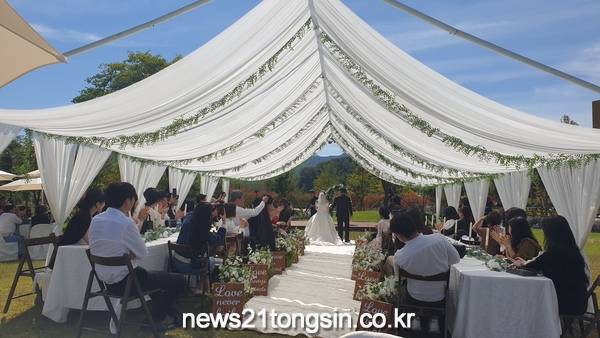 하루에 한 예식만 예약을 받아 시간에 쫓기지 않는 여유로운 예식이 가능하며, 하객들에게 예식 외에도 다양한 볼거리를 제공하는 등 1석 2조의 효과를 누릴 수 있어서 10월에만 4쌍의 연인이 결혼식을 올렸다.