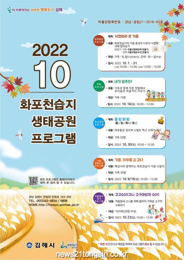김해시(시장 홍태용)는 화포천습지생태공원에서 다양한 가을 체험프로그램을 개설한다고 밝혔다.
