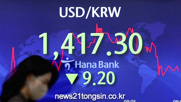 서울 외환시장에서 원·달러 환율은 전 거래일보다 16원 40전 내린 1,410원 10전에 마감했다.
