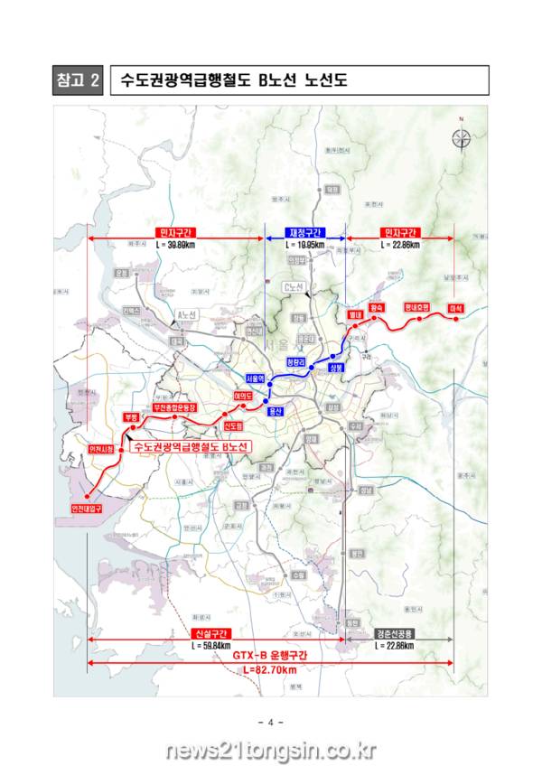 GTX B노선은 민자와 재정구간을 분리해 사업을 추진하고 있는데, 재정구간은 용산역~상봉역까지 19.9km이다.