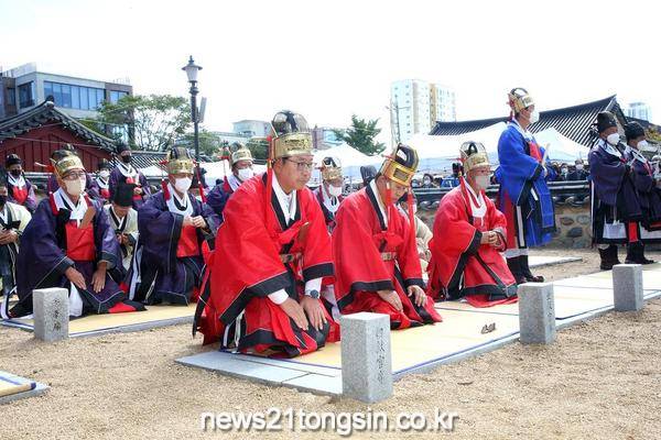 김해시는 10일 국가사적인 수로왕릉 내 숭선전(崇善殿)과 숭안전(崇安殿)에서 추향대제(大祭)를 봉했했다고 밝혔다. 코로나19로 올 봄 춘향대제까지는 일반관람이 불가했으며 이날 대제는 2년여 만에 음복소가 설치되는 등 예년처럼 진행돼 전국 각지의 종친과 관람객 2,000여 명이 참석한 가운데 성황리에 개최됐다.