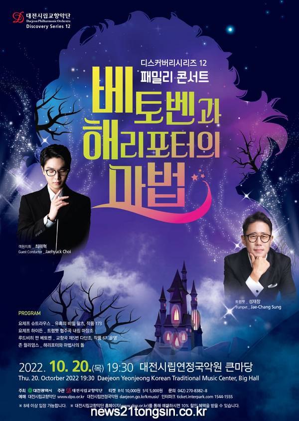 대전시립교향악단은 온 가족이 함께 즐길 수 있는 패밀리 콘서트 ‘베토벤과 해리포터의 마법’을 10월 20일(목) 오후 7시 30분 대전시립연정국악원 큰마당에서 연주한다.