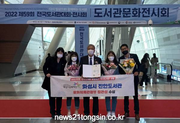 ▲ 사진= 화성시립도서관화성시문화재단(대표이사 김종대) 진안도서관이 한국도서관협회가 주관하는 ‘2022년 전국 도서관 운영평가’에서 문화체육관광부 장관상을 받았다.