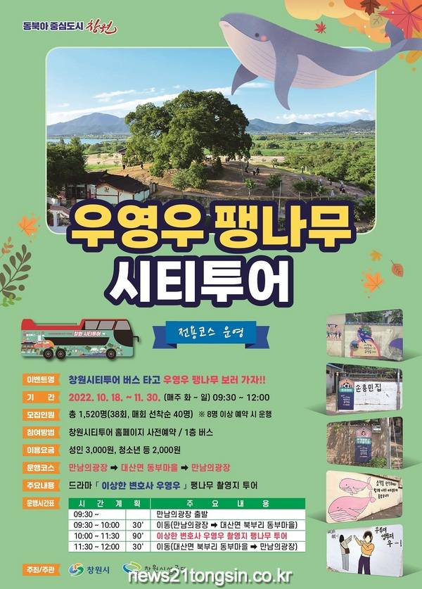 창원특례시(시장 홍남표)는 ‘우영우 팽나무’를 보러 가는 시티투어버스 특별노선 운영 기간을 연장해 오는 11월 30일까지 참가자를 모집한다고 13일 밝혔다.