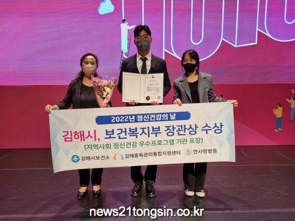 김해시중독관리통합지원센터는 지난 14일 ‘2022년 정신건강의 날’ 기념 행사에서 『2022년 지역사회 정신건강 우수프로그램 공모 부문』 우수기관으로 선정되어 ‘보건복지부 장관상’을 수상했다.