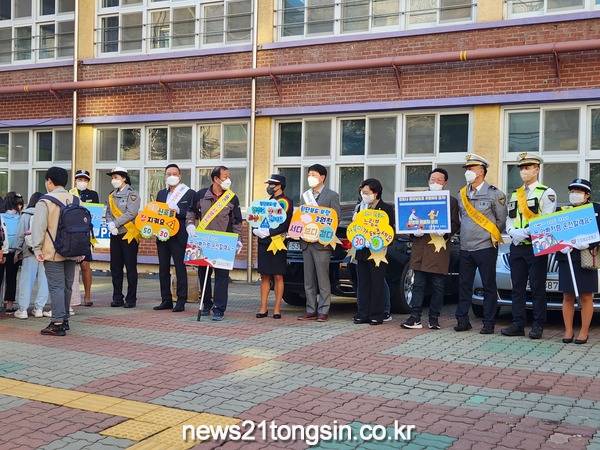 부평구(구청장 차준택)는 20일 부평동초등학교에서 어린이 교통안전 릴레이 캠페인을 진행했다.