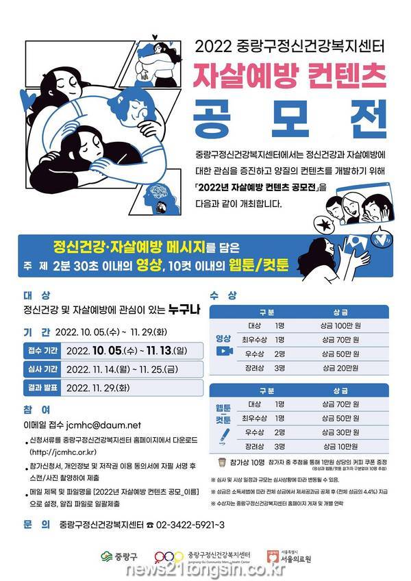 중랑구(구청장 류경기)가 11월 13일까지 ‘2022 자살예방 컨텐츠 공모전’을 개최한다.